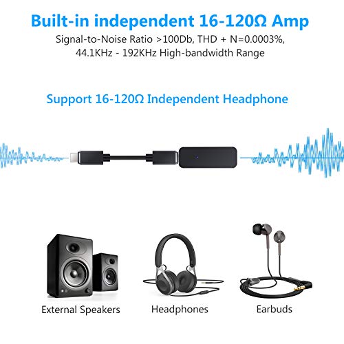 Amplificador de auriculares convertidor USB C DAC de 192 kHz es fácil de usar y realmente cambiará la forma en que percibe el sonido. El amplificador USB tipo C puede manejar auriculares estéreo de al más 16-120ohm de salida de audio estéreo, mientras que la tecnología de reducción de ruido hará que cualquier película o canción suene cristalina.