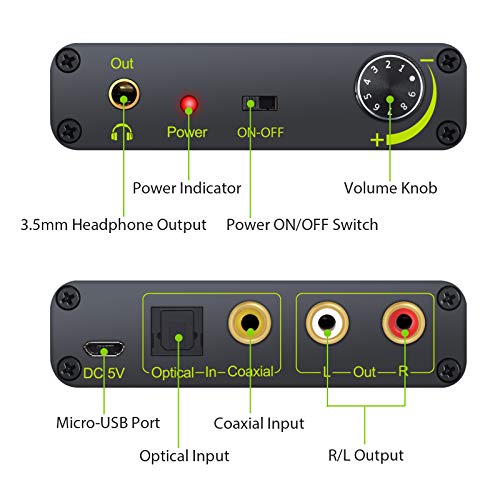 √ Puede convertir fácilmente la interfaz Coaxial o Toslink a la toma de audio analógica RCA y al jack para auriculares de 3,5 mm.